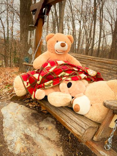Babybear: More happy trees! Oh, Mamabear, look! A sparkly fell down. Can I take it with me? You like sparkly.