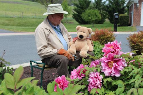 This is a perfect spot to perch and see if anyone notices me. I wore my pink ribbon so I would blend in with the flowers. It is beautiful here! Could this be our new home?